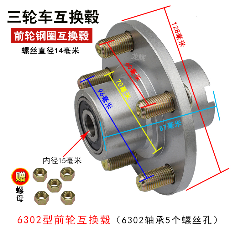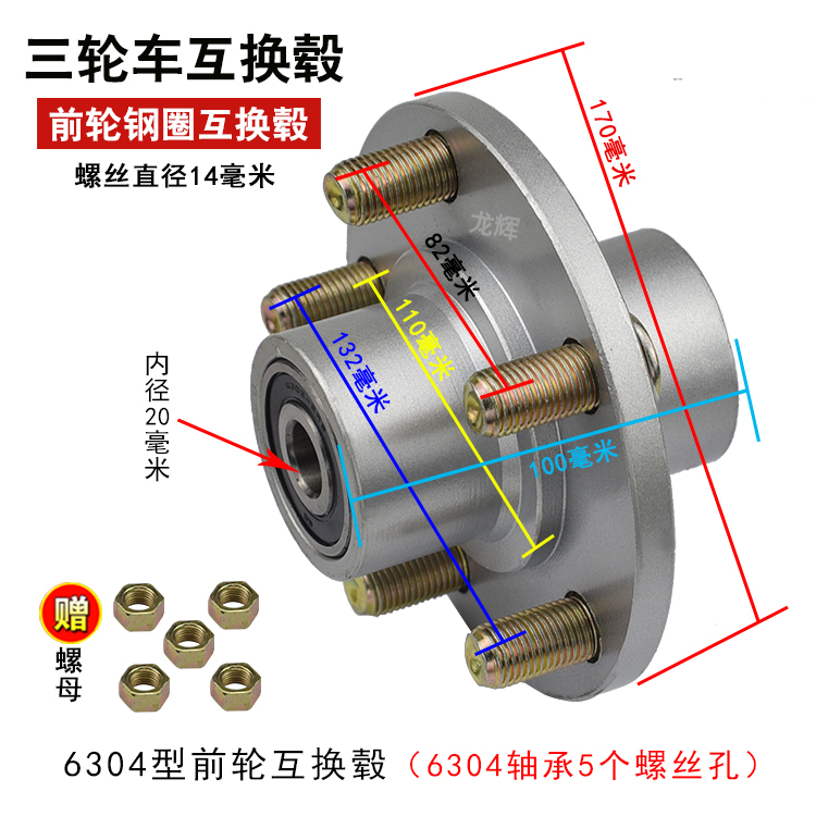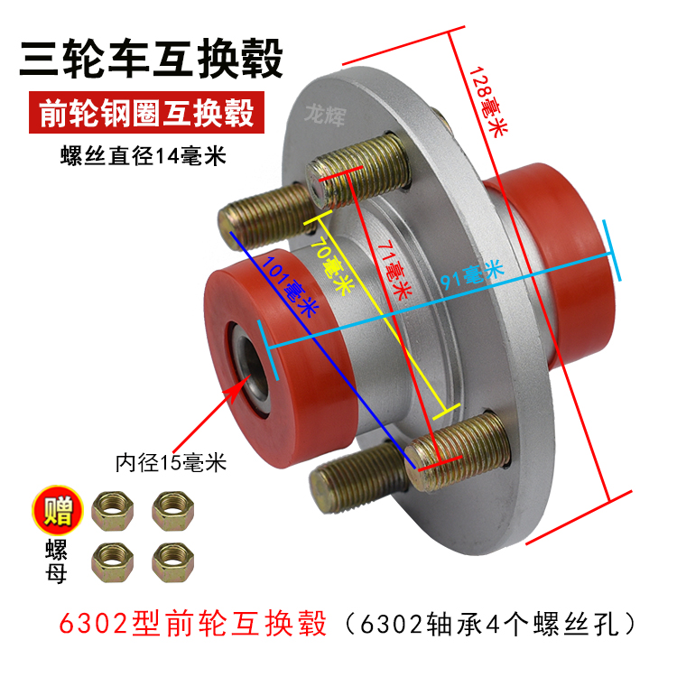 Electric tricycle front wheel interchangeable hub 301 302 304 Rim interchangeable front wheel interchangeable drum interchangeable wheel