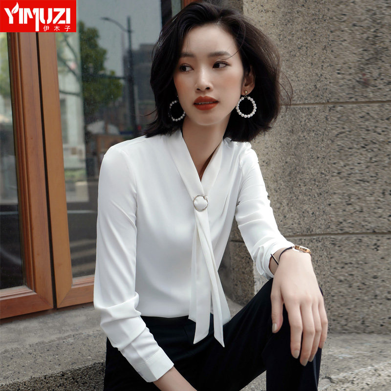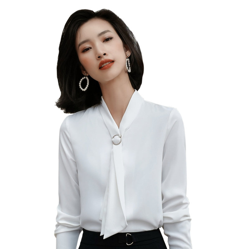 White Chiffon shirt femininity 2021 Autumn fashion Western school long-sleeved top streamer hanging professional white shirt