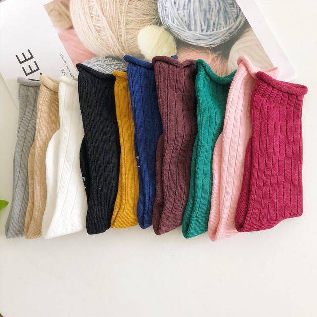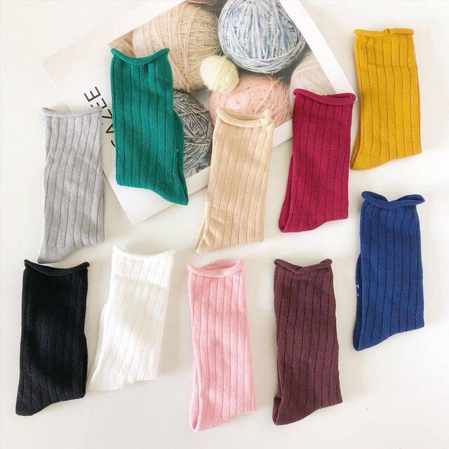 ins bursting children socks South Korean baby autumn winter baby midbarrel socks socks candy stockings candy color wide strip curl stockings