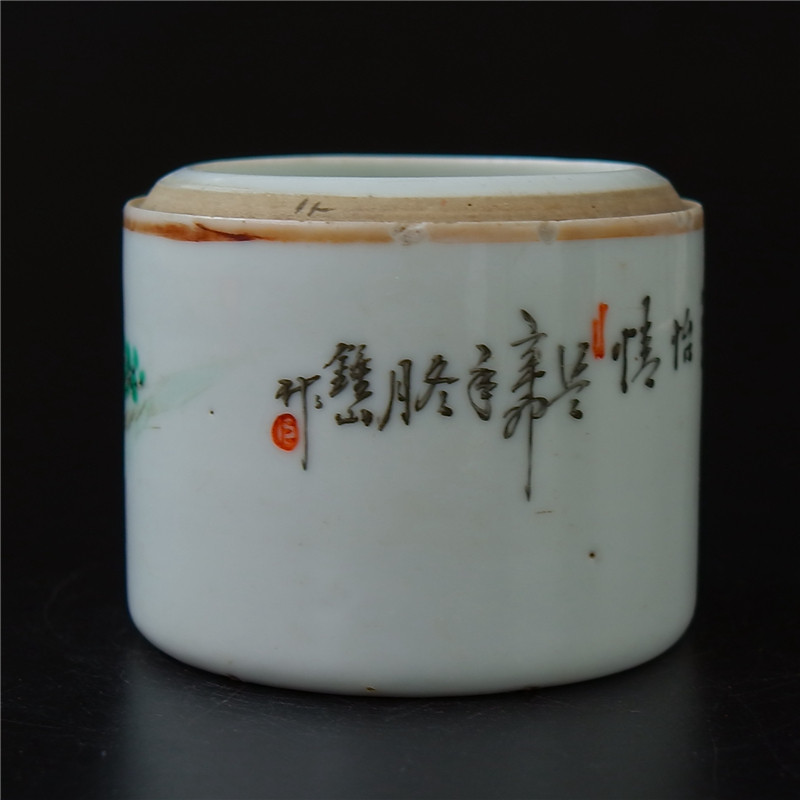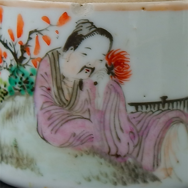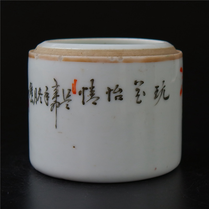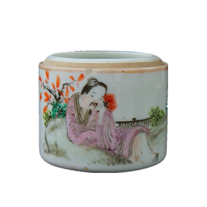 Object = Chinese famous family light purple color figure Gaoshi cylinder porcelain ceramics literati porcelain art collection