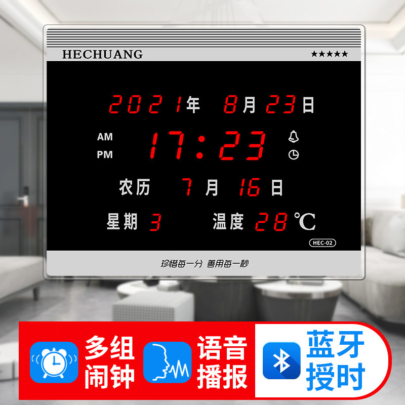 Perpetual Calendar Electronic Clock Living Room Wall Hanging Digital Clock Plug-in Mute Luminous Dynamic Wall Clock Home Desktop Clock
