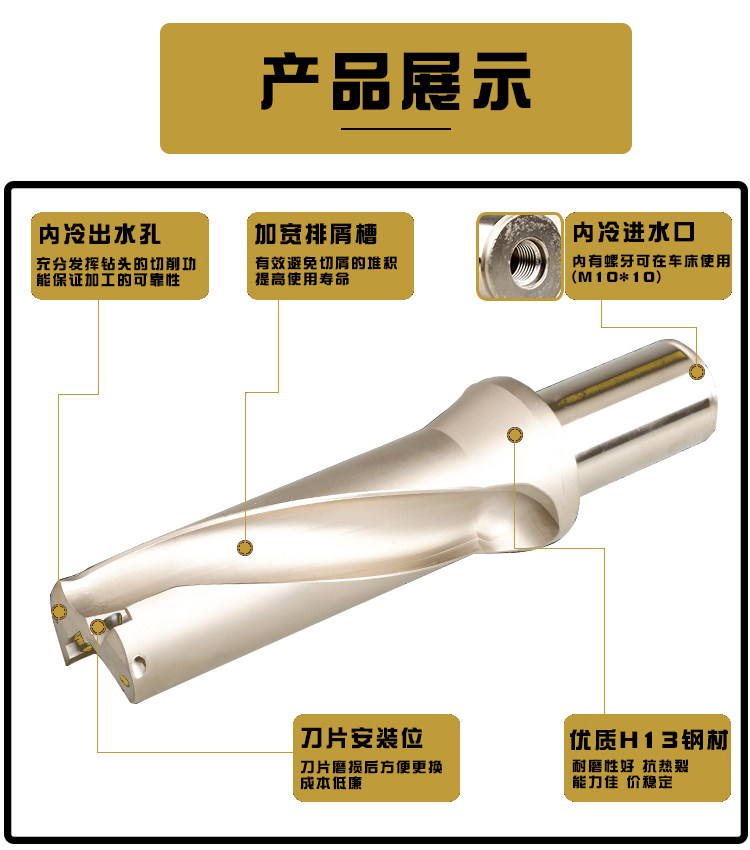 U drill fast drill bit 2D3D4D5D violent water drill 2 times 3 times 4 times 5 times diameter WC SP flat bottom drill blade handle