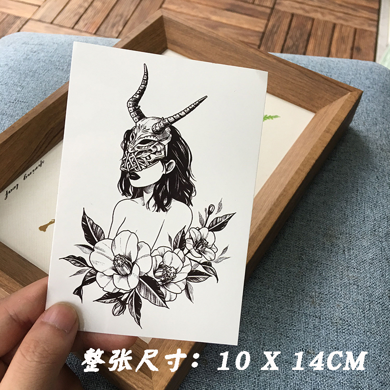 Tattoo stickers original tattoo black and white ins wind dark mask cow antlers girl small arm 2 net red new