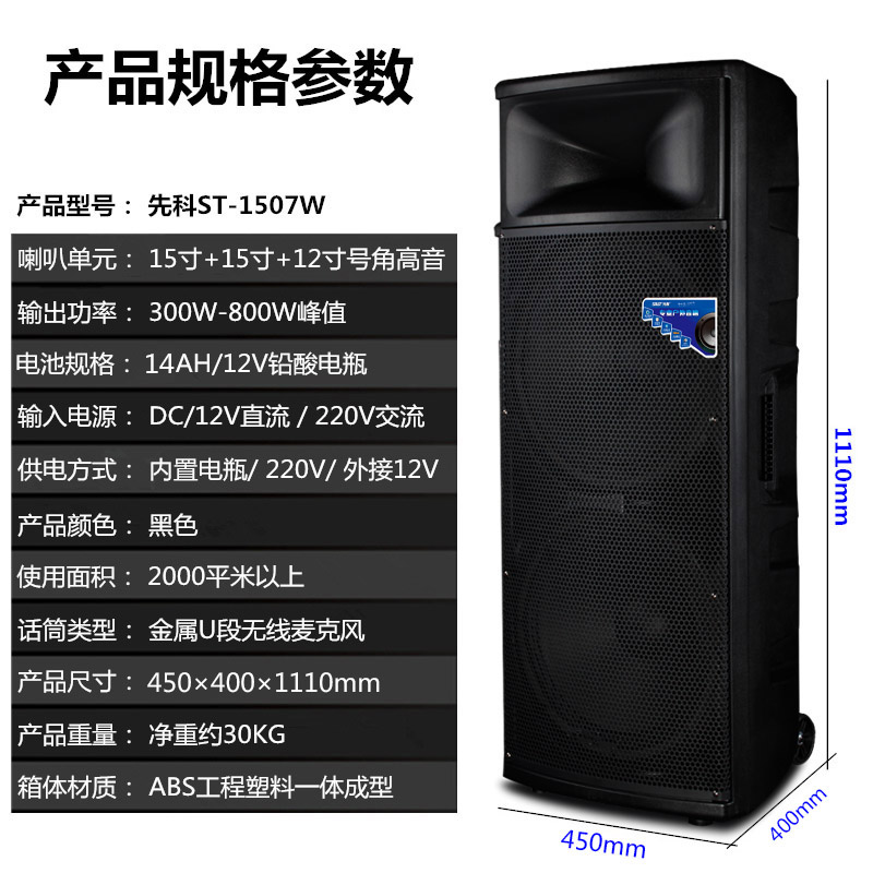Shchenko 1507W High Power Square Dance Acoustics Double 15 Inch Outdoor Portable Pull-Lever Speaker Large Professional Heavy Bass Stage Performance Sound Power Big Volume Sound