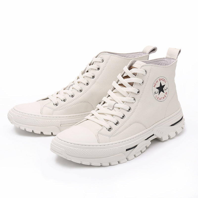 Head Layer Bull Leather High Drum Men's Shoes Spring Summer New Plus Suede Sports Han Edition 100 Hitch Casual Stars Small White Shoe Boomer