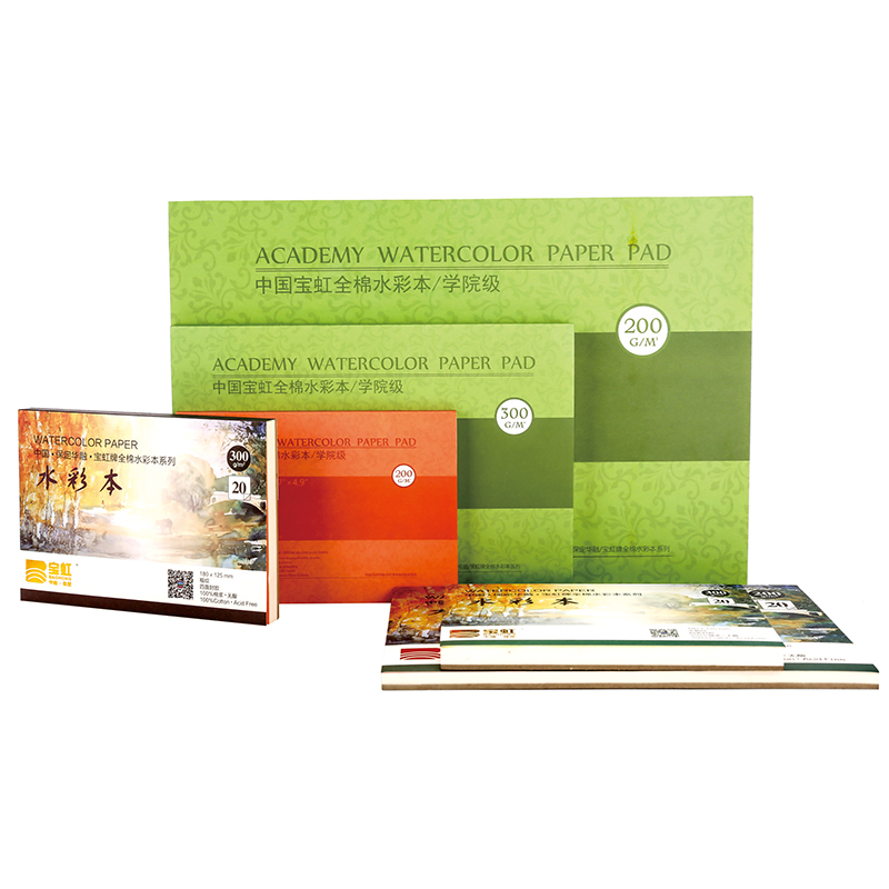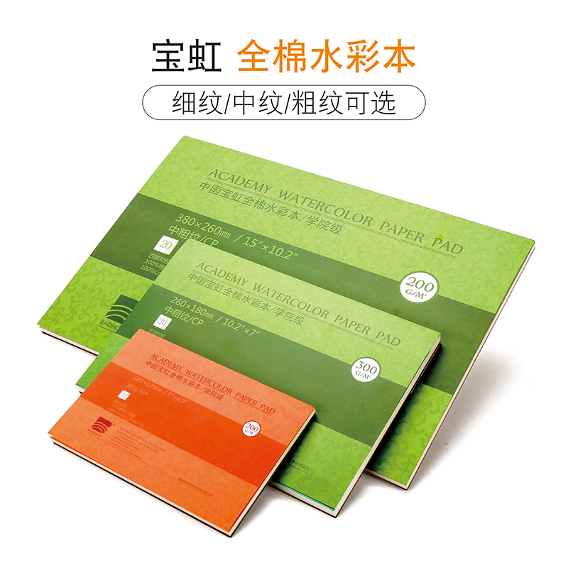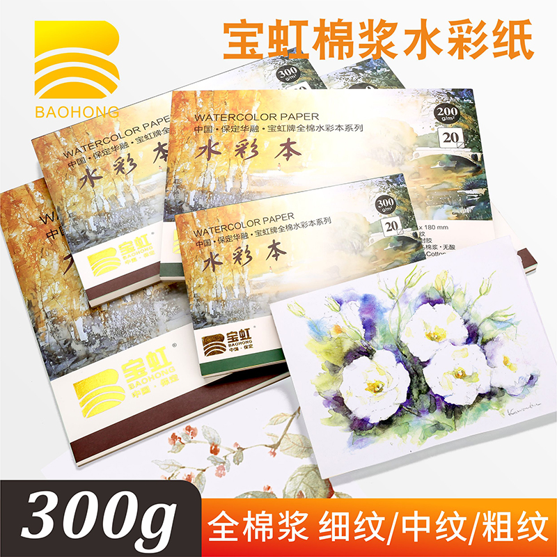 Baoding Baohong Watercolor Ben 300g Cotton Pulp Professional 16K32k Four Sides Seal Glue Color paper in thick grain A3 medium coarse grain 16 open travel portable packaging 8 open 4 open painting paper graffiti