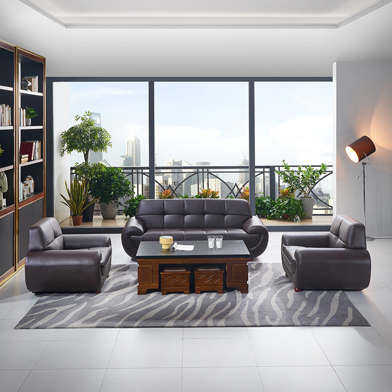 Office leather sofa coffee table combination set simple modern reception area reception room small apartment three-seat sofa