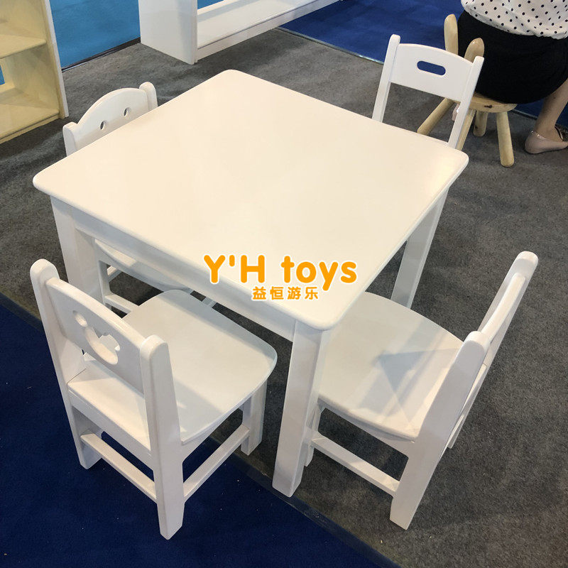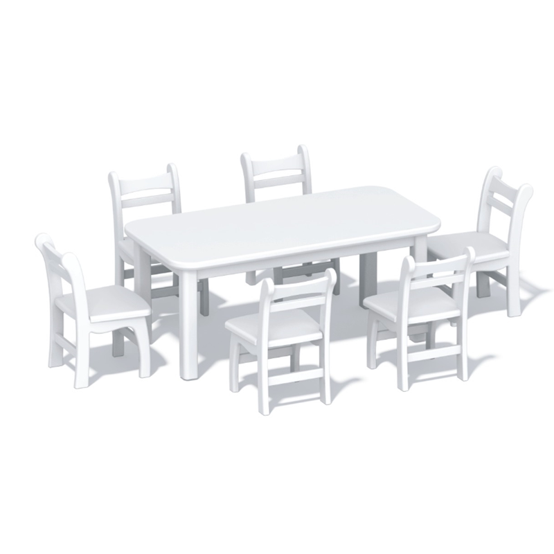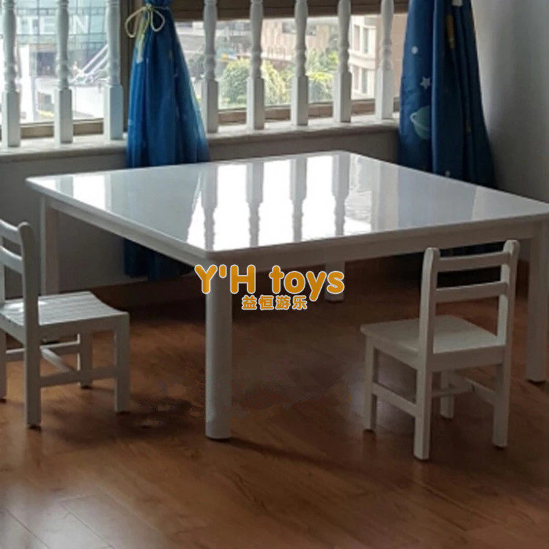 Kindergarten children's high-end white paint rectangular square table painting game table learning table and chair moon table round table