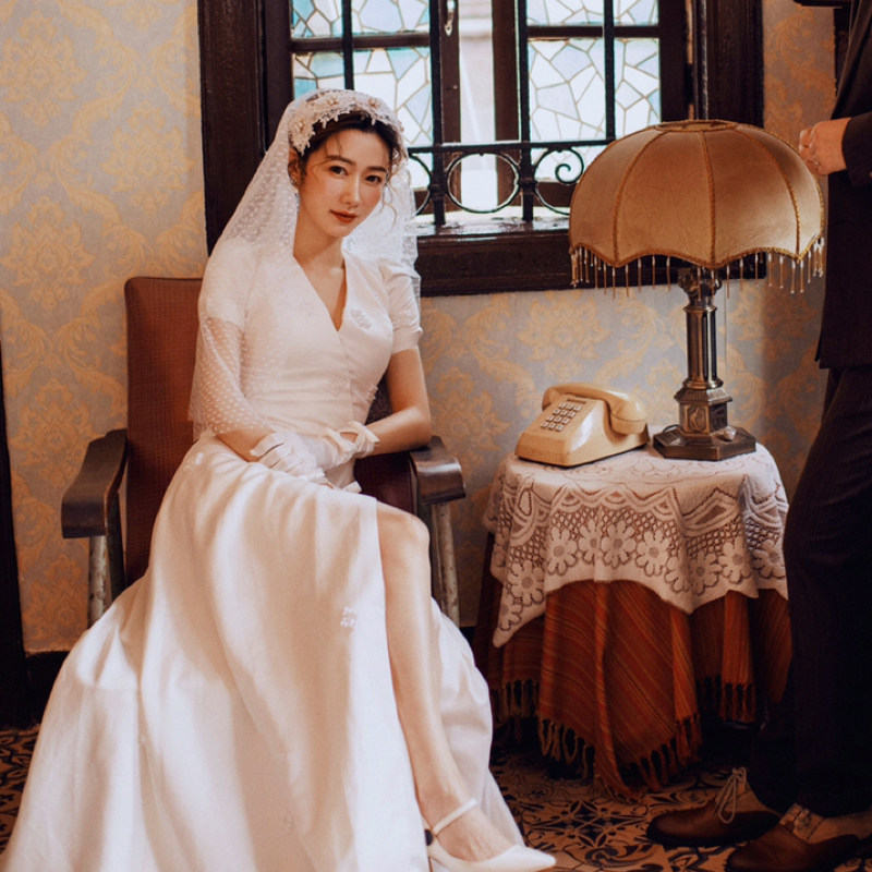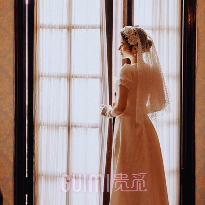 Retro Lace Head Yarn Cap Yarn Wave Dot short Super Fairy Net Red Photo Props Bridal Super Fairy Wedding Dresses Headwear headwear