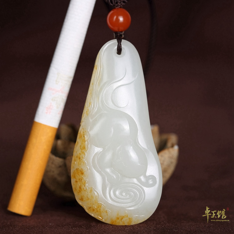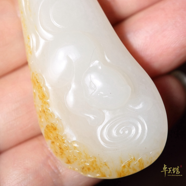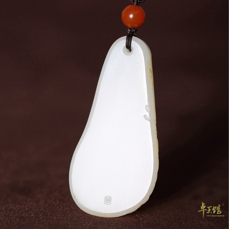 (Zhuo Yuguan) Old and rich, Xinjiang Hetian jade seed material warm white sprinkled with gold leather pendant cat butterfly Li Zhuo's works