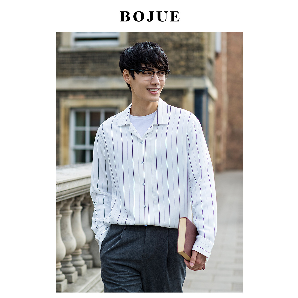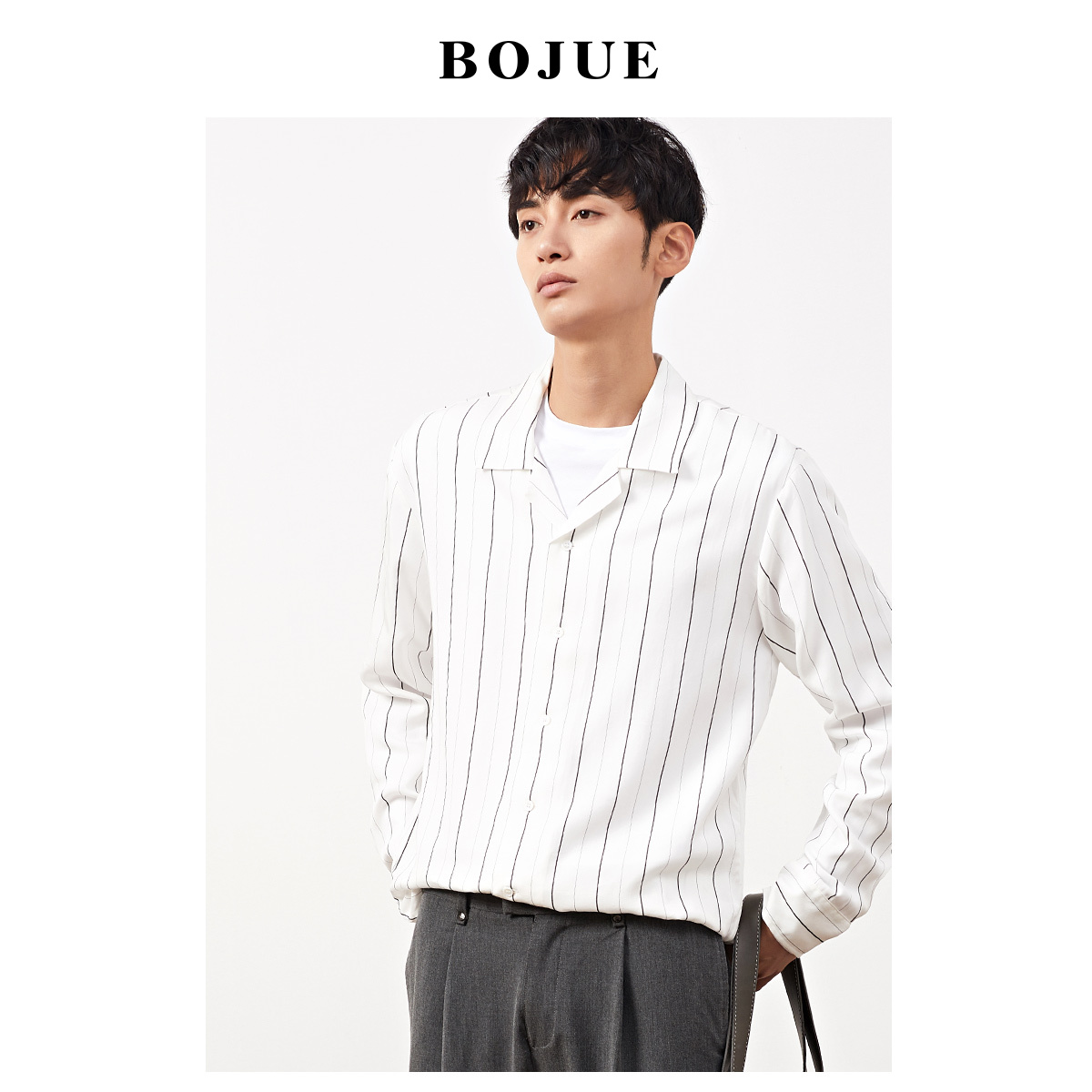 Tencel white shirt 2019 autumn new stripes loose Korean fashion handsome lapel long sleeve shirt men's thin
