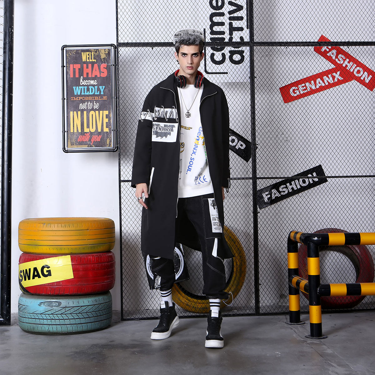 GENANX lightning tide cards with long version of wind jersey men's loose hip hop stamp (New Year's red) jacket for men's national tide