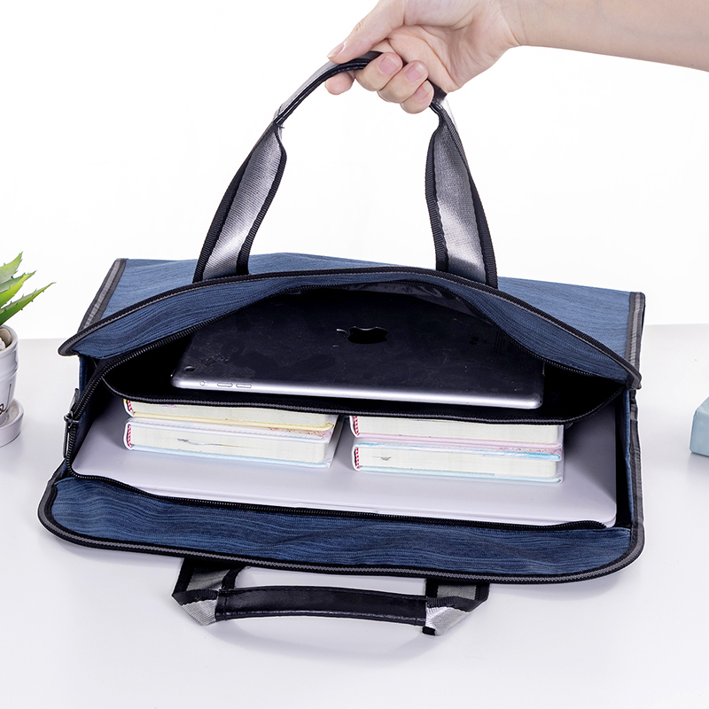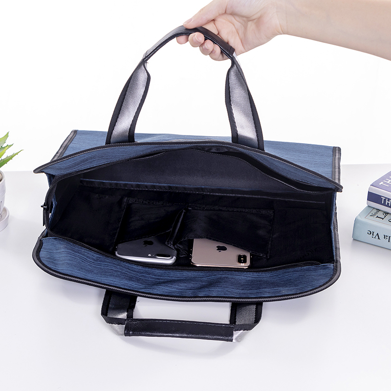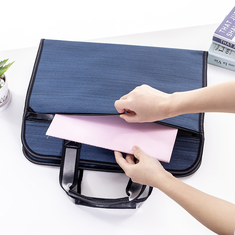 Document bag pull chain canvas A4 hand-held multi-layer document bag business men's and women's large capacity briefcase meeting customization
