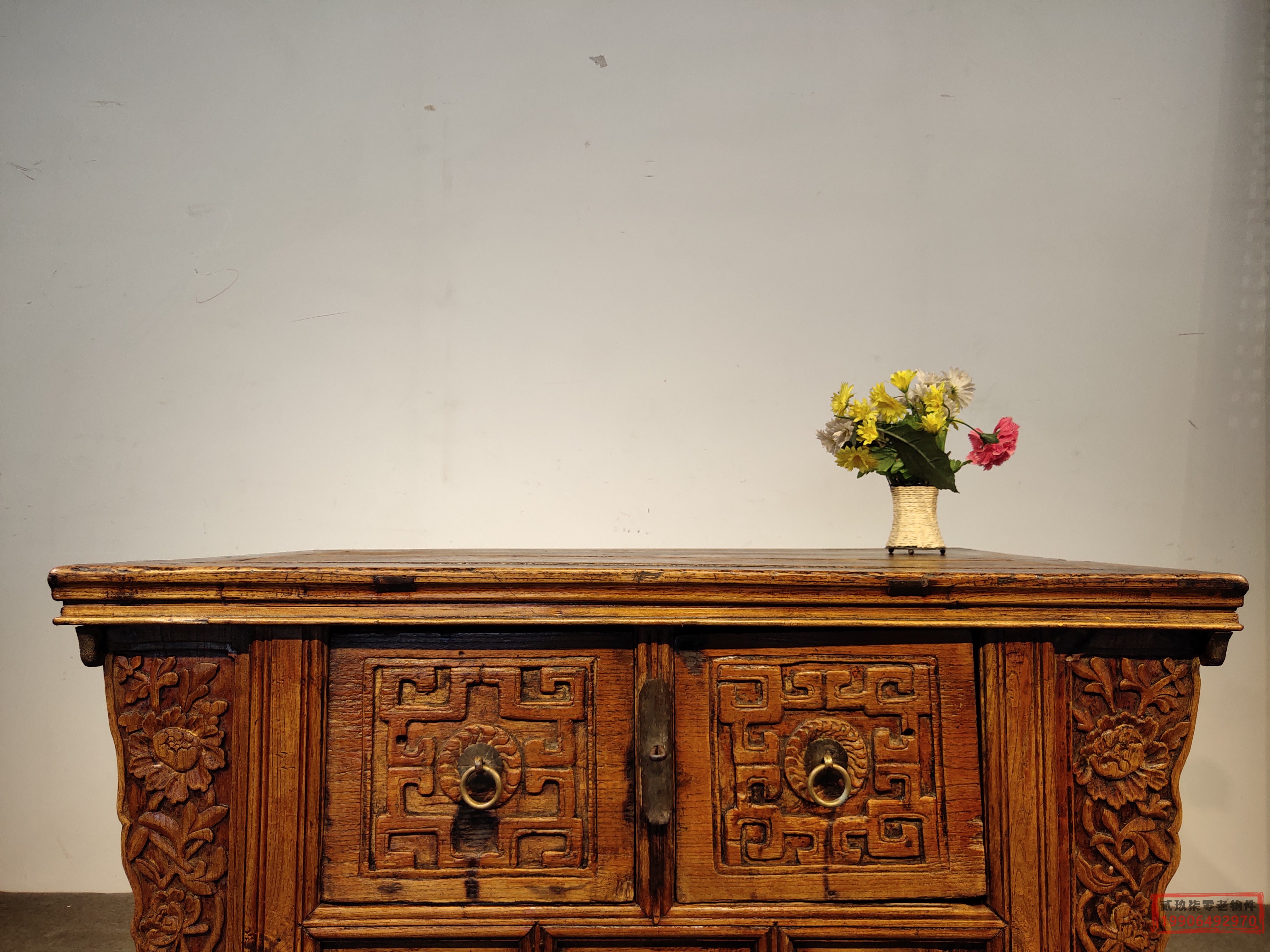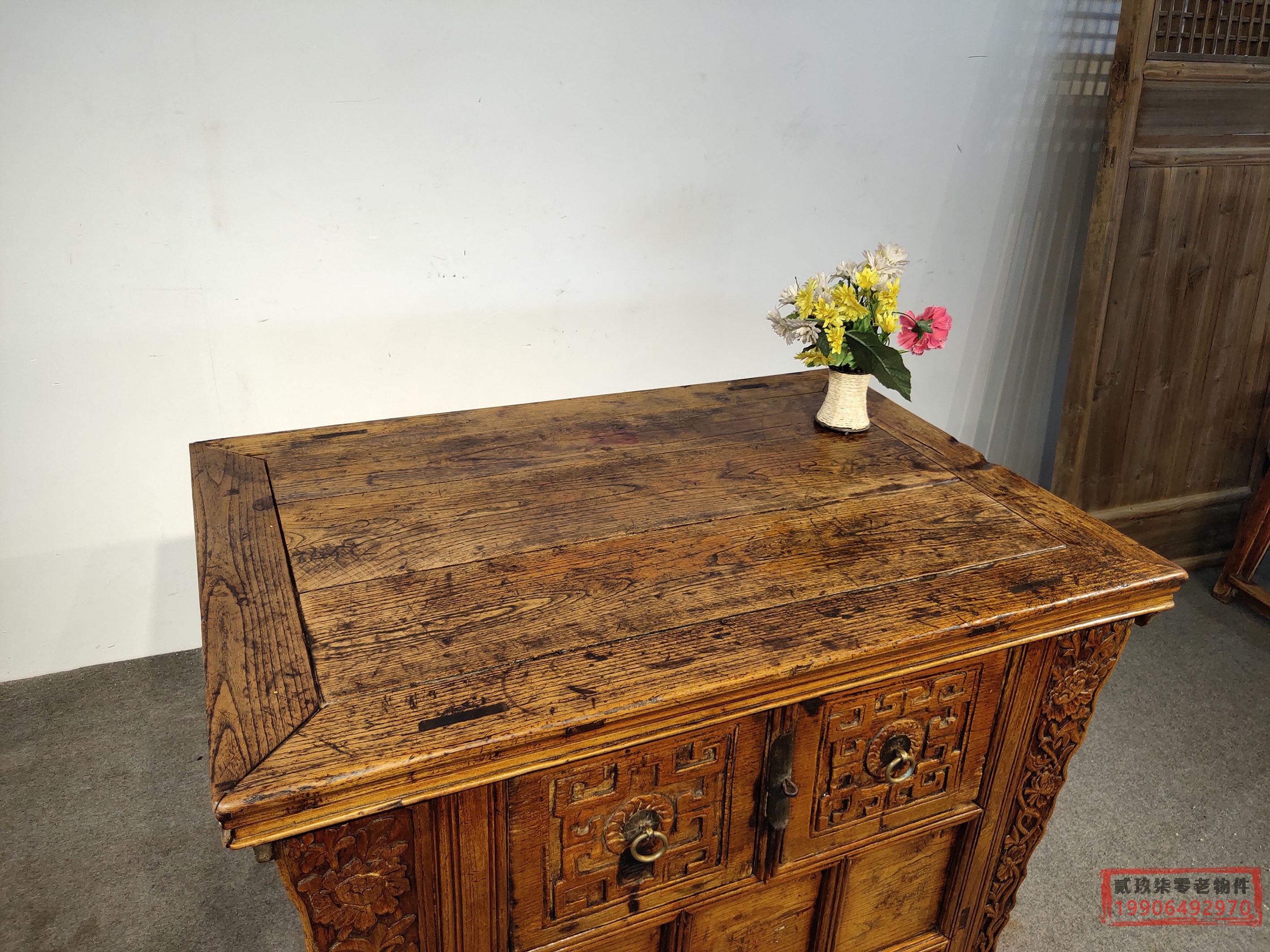 Antique collection old furniture Ming and Qing classical carved two boring table old table for retro old elm decorative porch cabinet