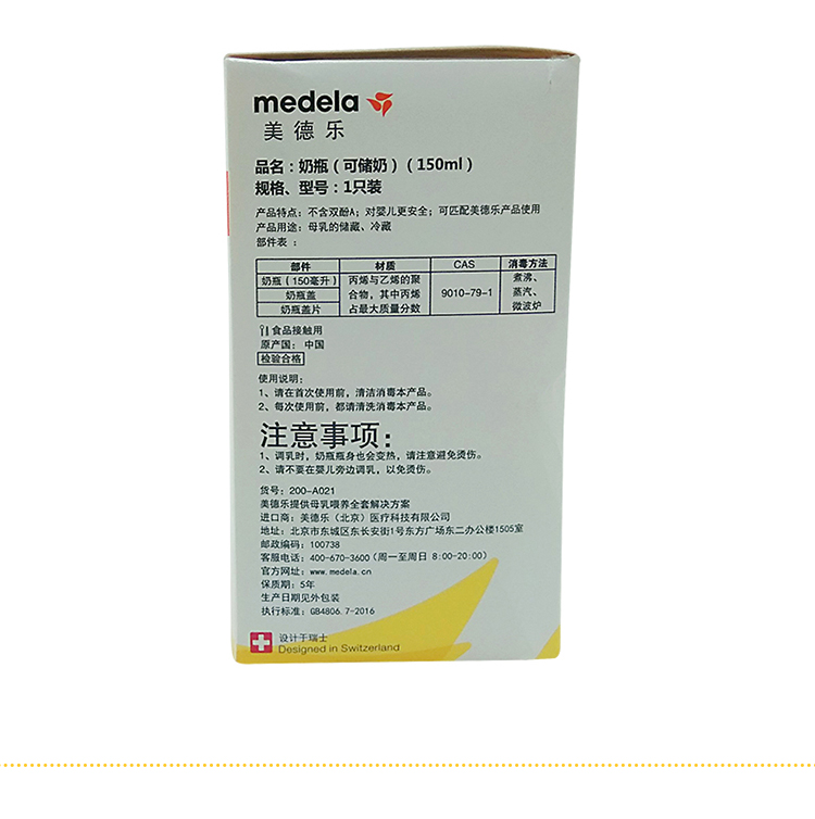 Medela 150ml 250ml baby storage bottle glass PP bottle refrigerated standard caliber Single