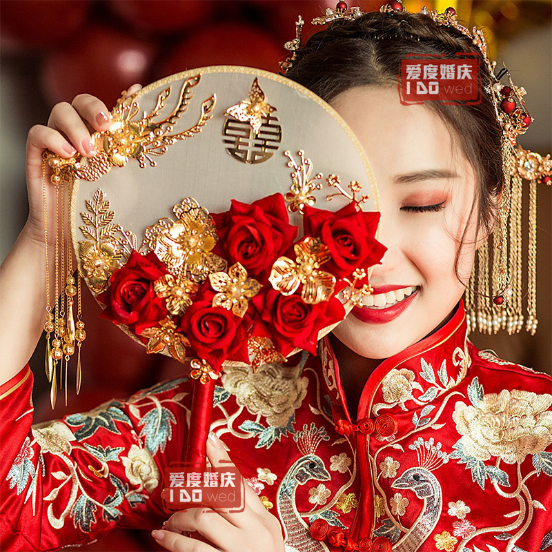 New Chinese Wedding Group Fan Show and Handmade Fan Chinese Wind Ancient Wind Bridal Fan Show Fan Show Fan Show Fan