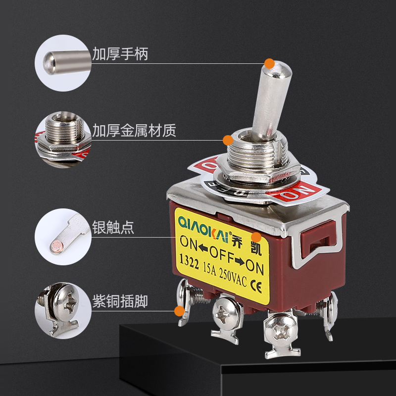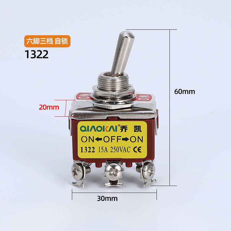 Button switch shaking head rocker switch E-TEN1322 6-pin 3-speed 15A 250V electronic switch
