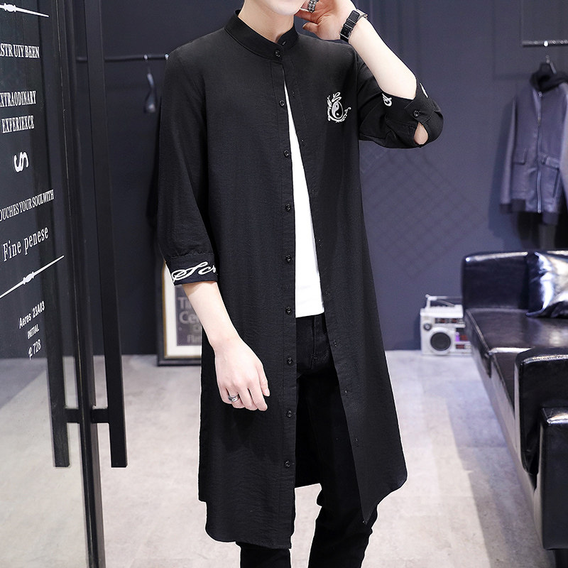 Summer five-sleeve windbreaker men's extension over the knee cape handsome Chinese wind embroidered long shirt men's summer sun jacket