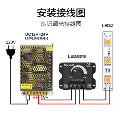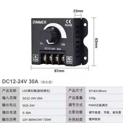 LED manual knob 360W dimmer monochrome light with rotating electrodeless light bar dimming controller 12-24v30A