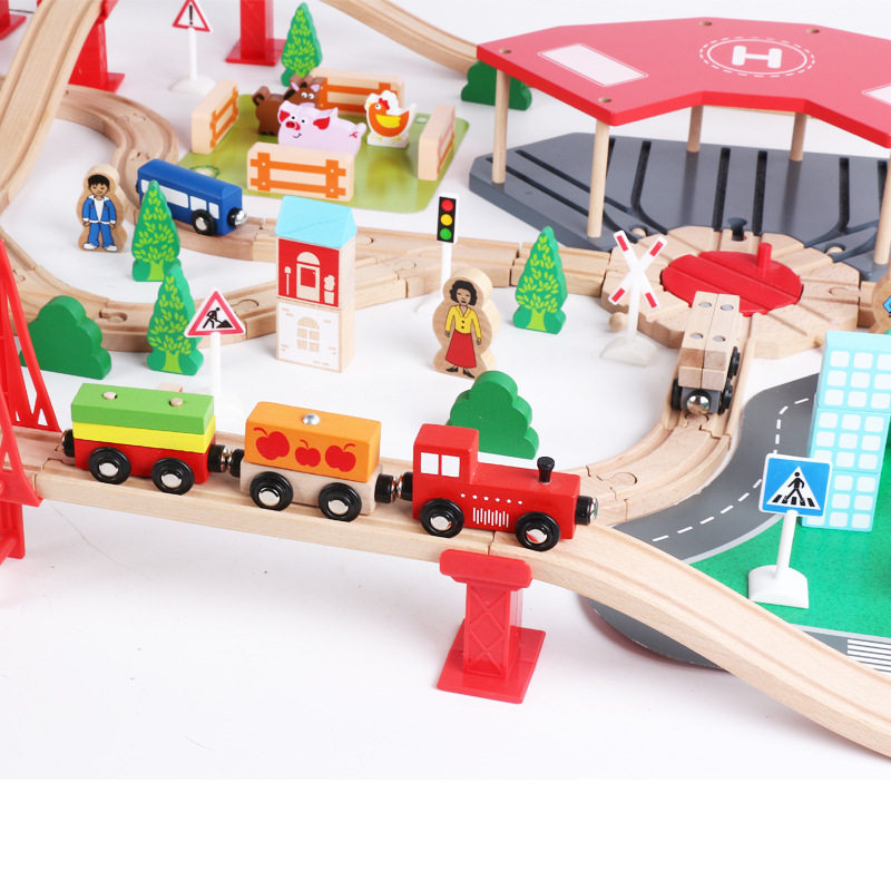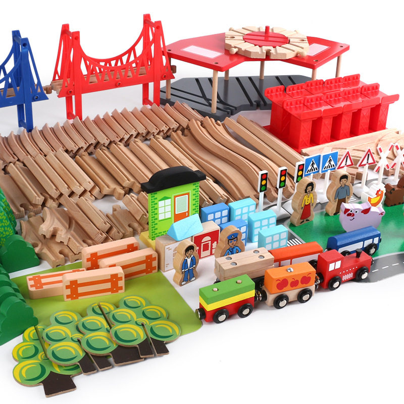 New wooden 140-piece track set small train children's educational diy assembled toys factory direct sales
