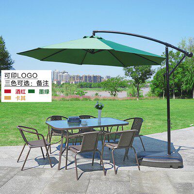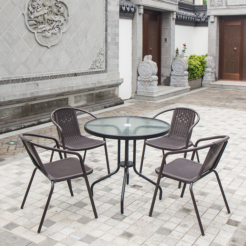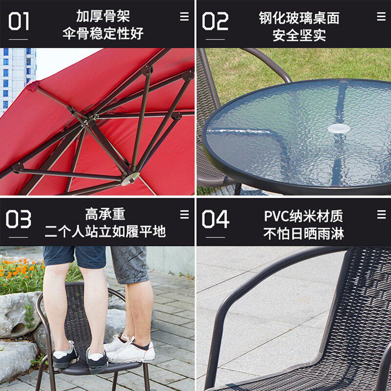 Outdoor table and chairs with umbrella rattan outdoor courtyard coffee outdoor waterproof sunscreen balcony leisure wrought iron terrace combination