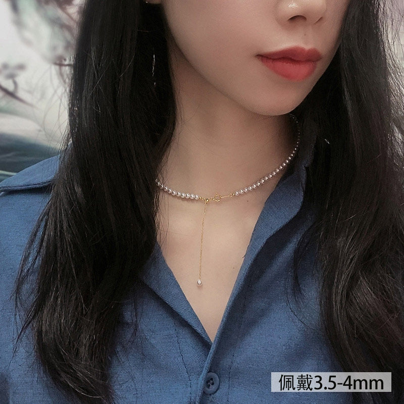Small JAPAN AKOYA SEA WATER PEARL BABY SMALL NECKLACE STRING BEADS 18K GOLD POSITIVE ROUND AURIS 3-3 5 NECK CHAIN-Taobao