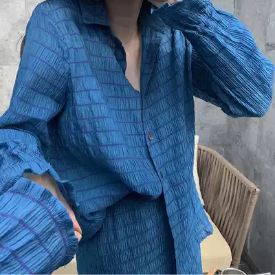 (LAMBO exclusive @ special) special three-dimensional wrinkle craft shirt fishtail skirt set