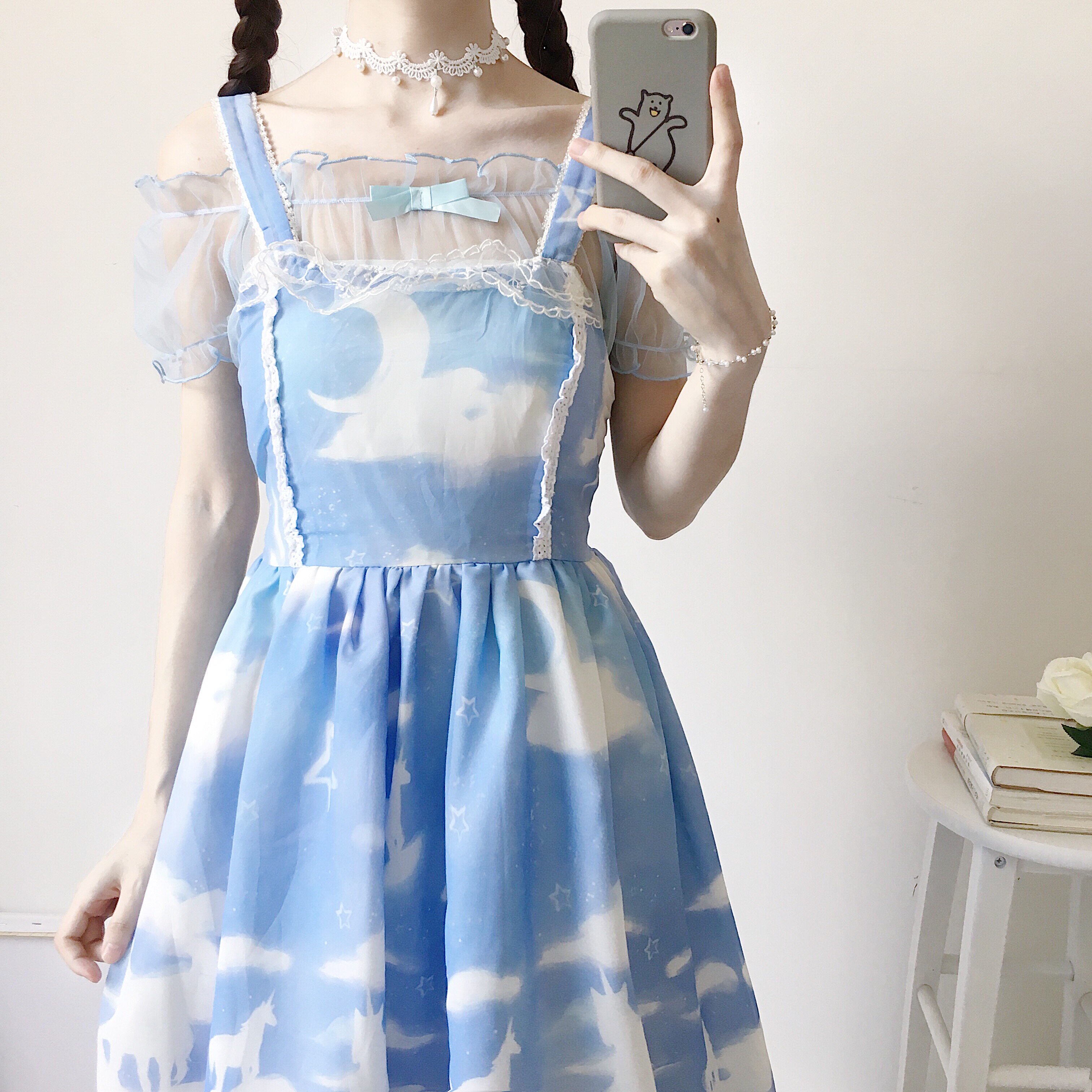 Summer women's clothing day Soft sister Lolita dress with a snow spinning shoulder shirt and blouse shirt