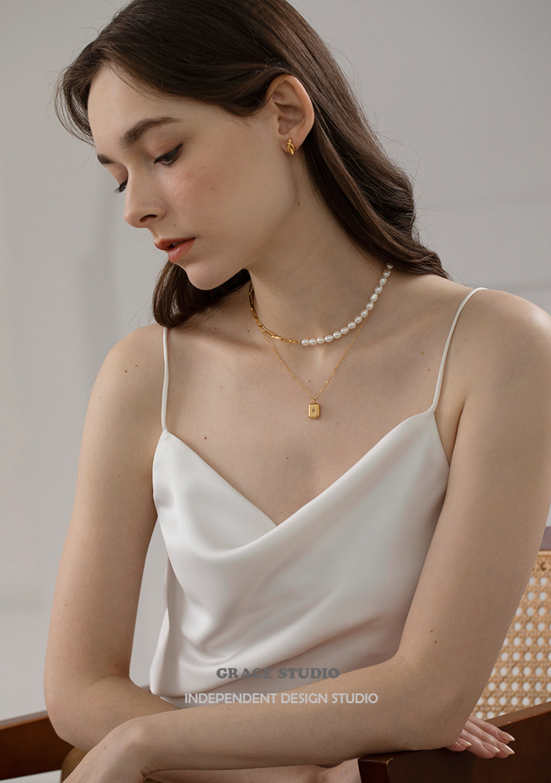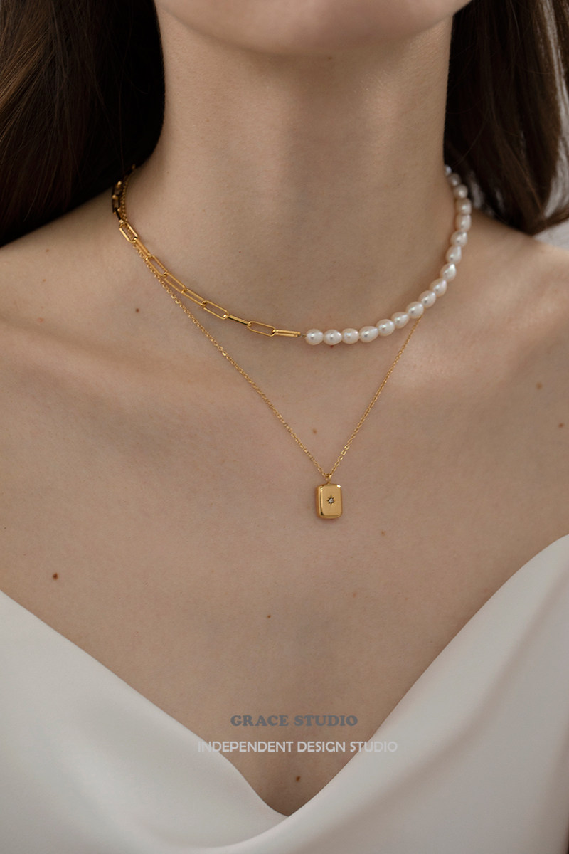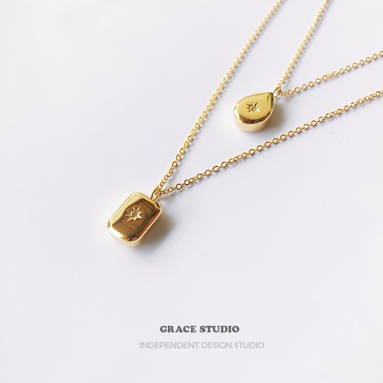 G S Star wish cold wind fashionable square stacked necklace Female eight-pointed Star water drop geometric designer clavicle chain