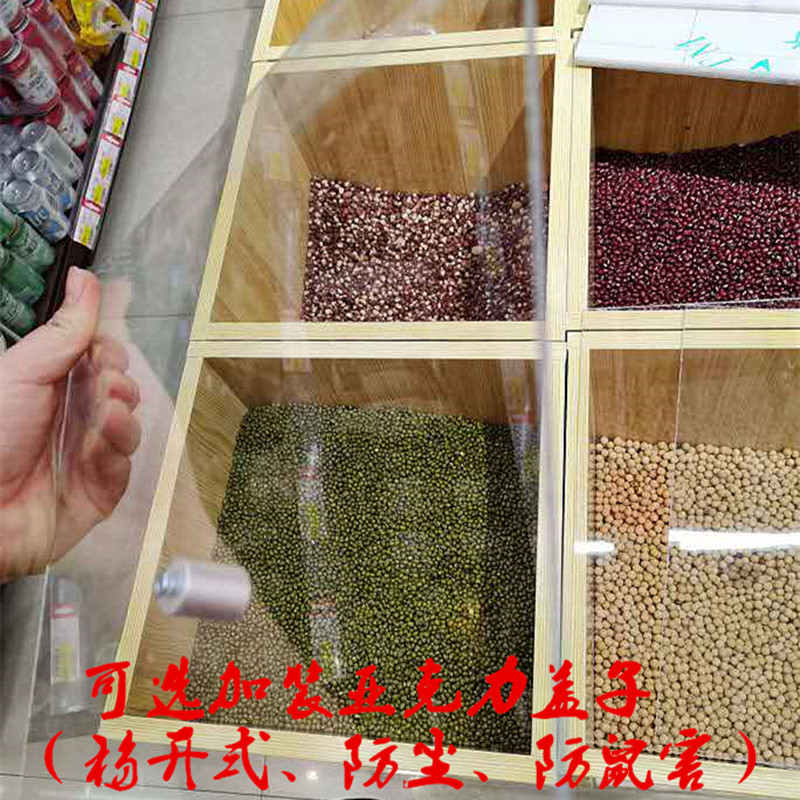 Supermarket rice barrel grain cabinet rice grain shelf miscellaneous grain cabinet customized solid wood rice grain bucket wood rice grain barrel