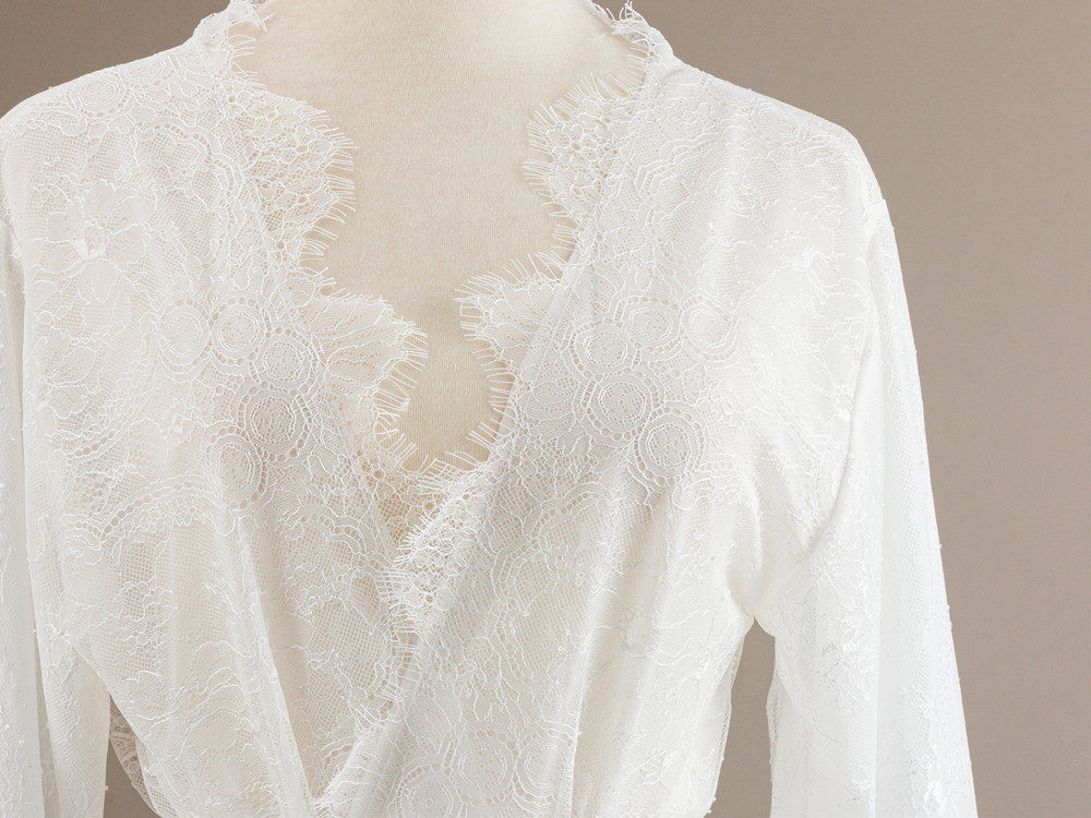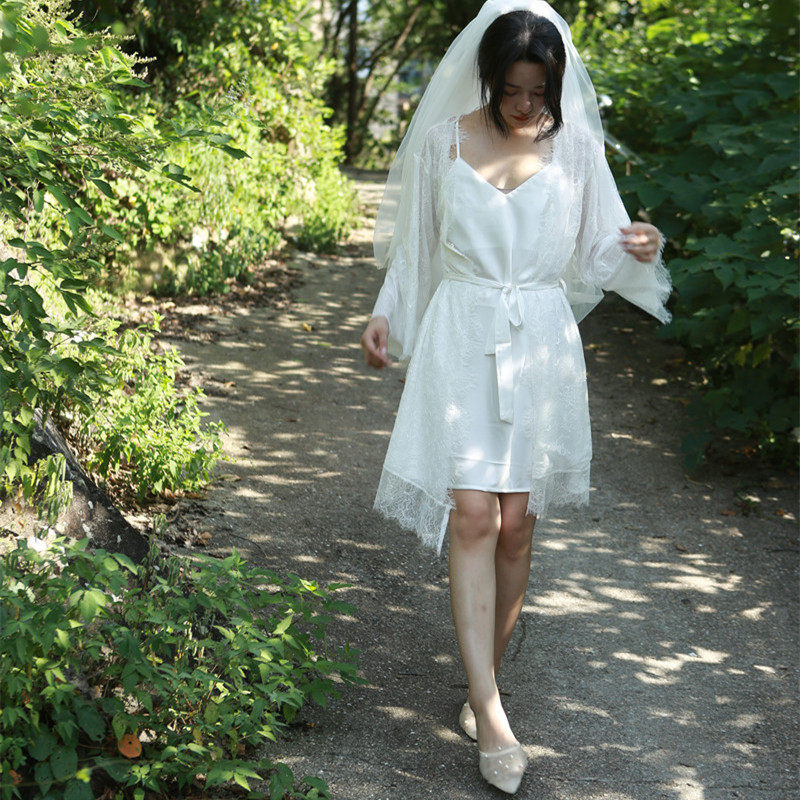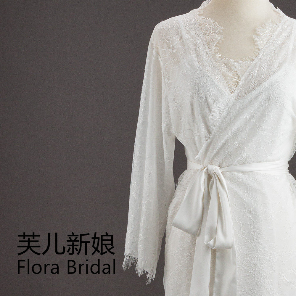 Flora French white double-layer lace morning gown bride wedding wedding sexy makeup photo set two-piece set