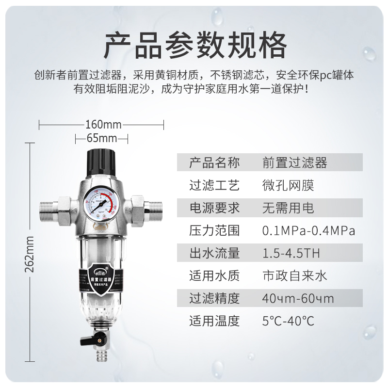 Pre-filter household tap water large flow pipeline central water purifier free pressure adjustment free core change