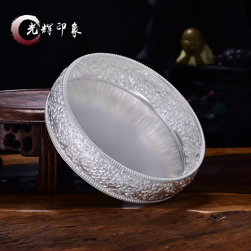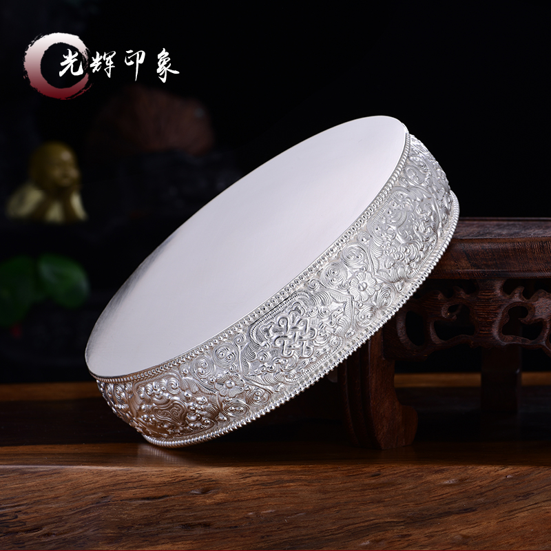 Glorious impression Tibetan S99 sterling silver Manza plate handmade eight auspicious Manzaman tea Luo 12cm repair plate