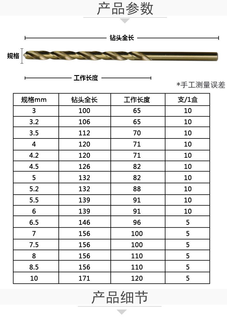Cobalt-containing lengthened twist drill bit 3-12mm with cobalt stainless steel lengthened drill wood punching aluminium with iron turning head