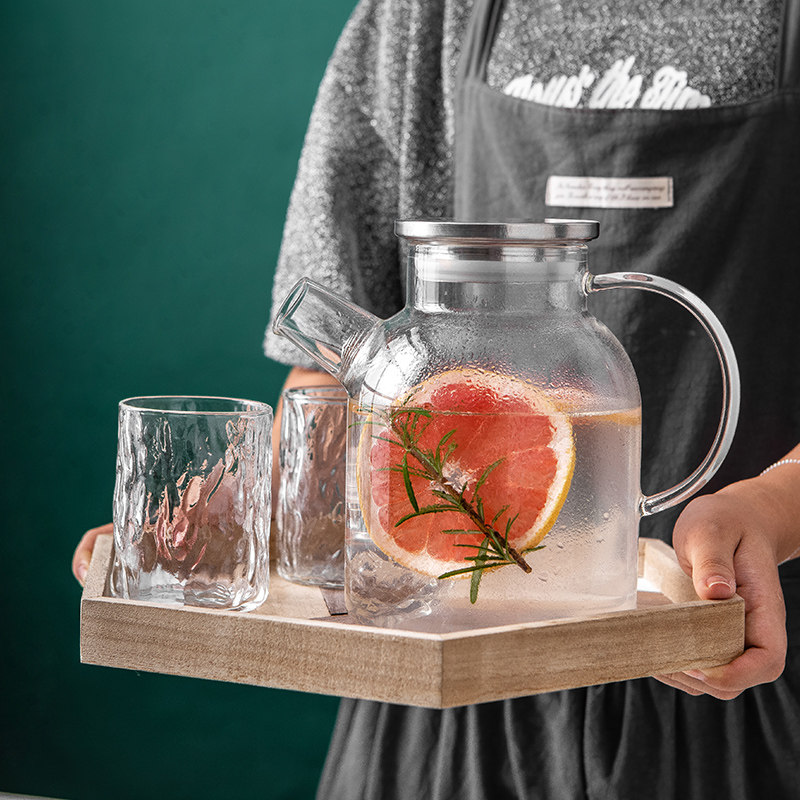 Nordic style cold water kettle Glass kettle Household high temperature boiling water cup Heat-resistant explosion-proof cold water kettle set Cold water kettle