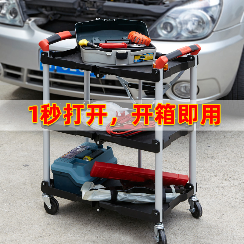 Installation-free Sai Tuo household kitchen Three-layer foldable service car Tool trolley tool storage shelf shelf