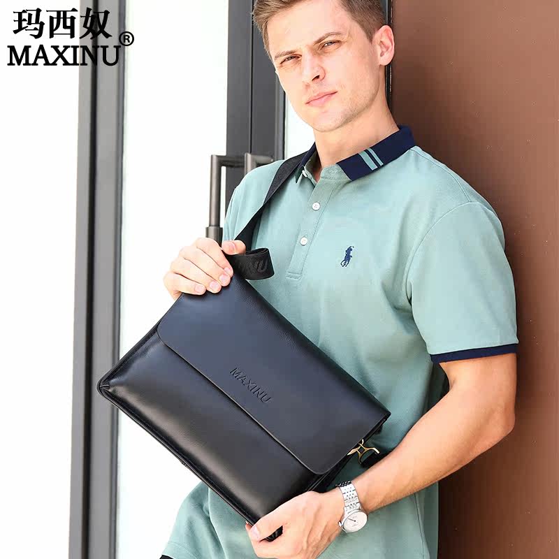 Slanted Satchel Bag Men's Bag Single Shoulder Bag Genuine Leather Business Brand Bull Leather Middle-aged Scapegoat Daddy Man Bag Briefcase Hanging Bag