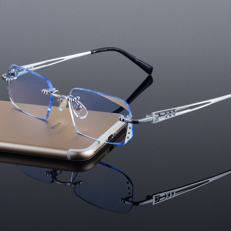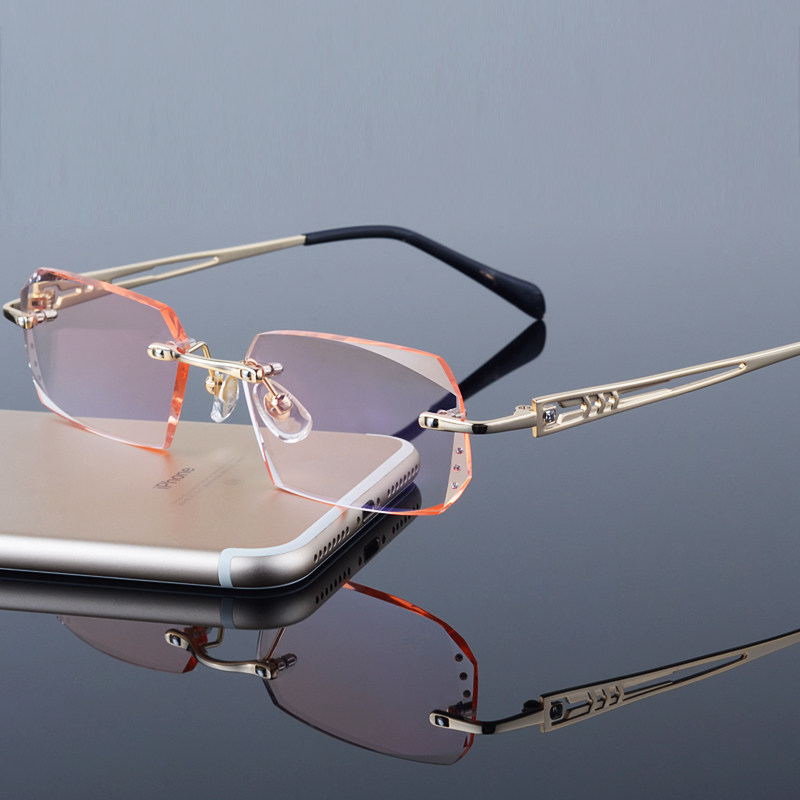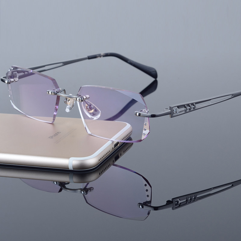 Pure titanium myopia glasses without frame cutting edge ultra light commercial glasses for men anti-blue-ray radiation color discoloration flat glasses