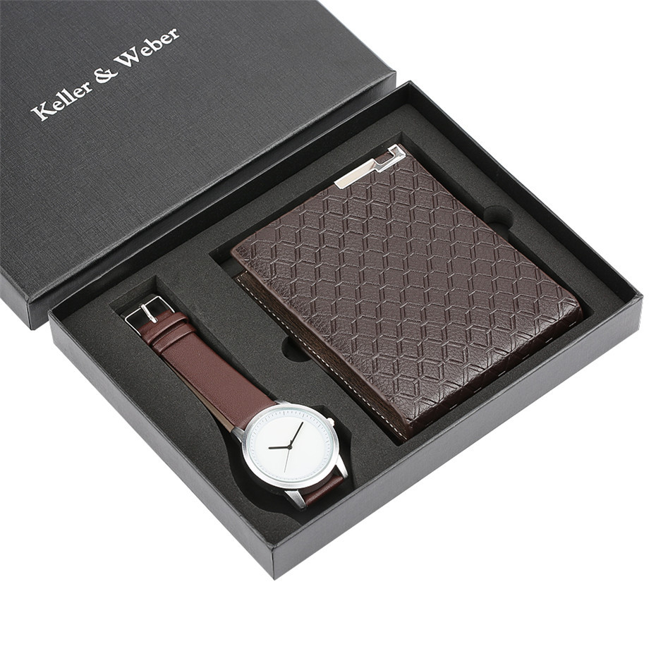 Quartz Wrist Watch Leather Wallet Gift Set for Boyfriend men