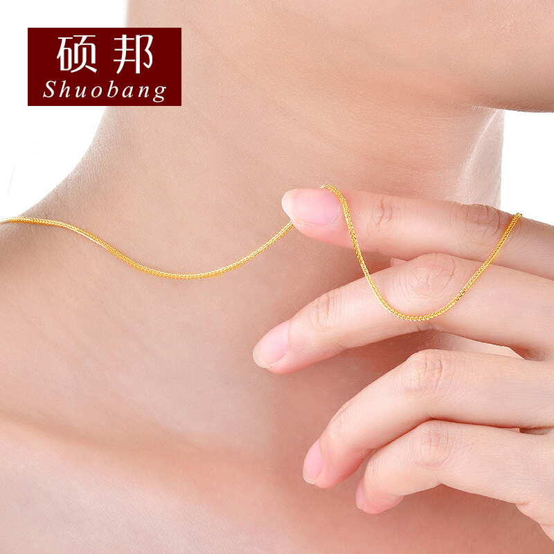 18k Gold Necklace Platinum Chopin Gold gold K gold rose gold lock bone chain AU750 adjustable vegetarian chain women gold necklace