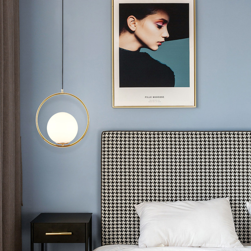 Bedroom headboard pendant lamp glass iron art loft minimalist walking track lamp Xuanguan corridor Nordic round dining room small hanging lamp