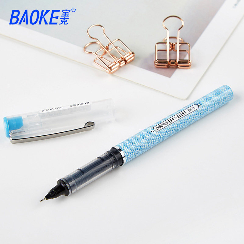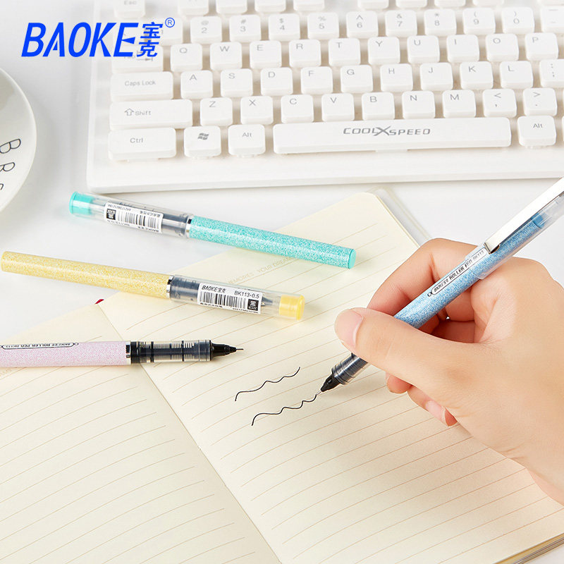 Baoke straight liquid water-based ballpoint pen students with gel pen 0 5mm black signature needle pen BK113 water-based pen quick-drying