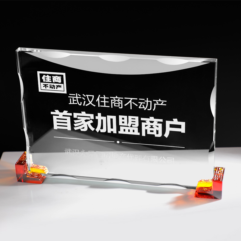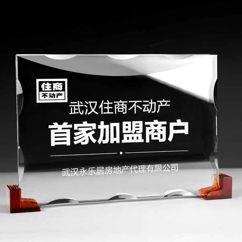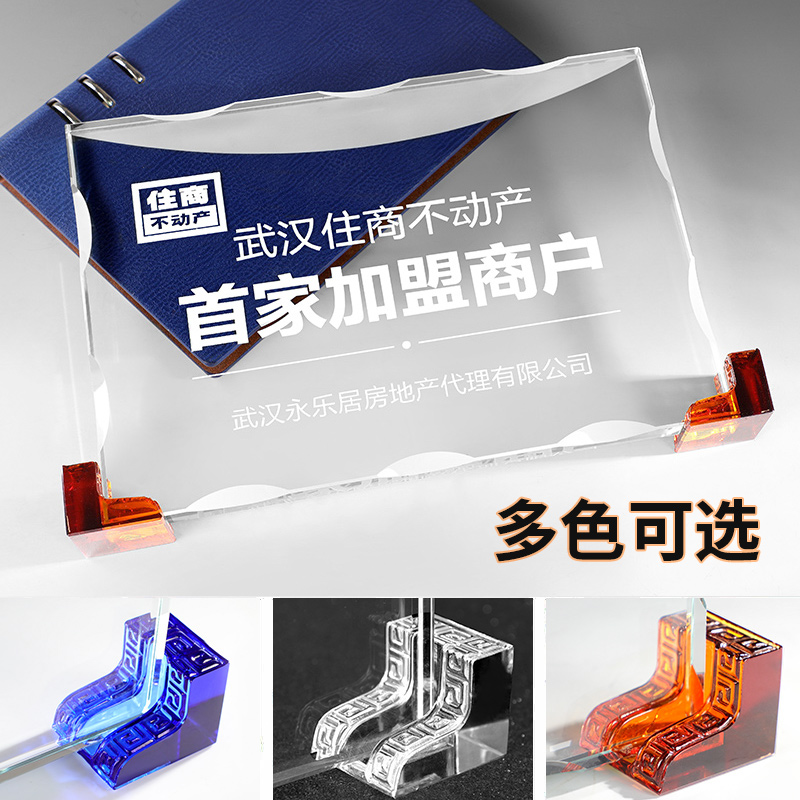 Liuli angle license plate Custom crystal dealer Blue trophy Agent authorization letter Excellent partner medal