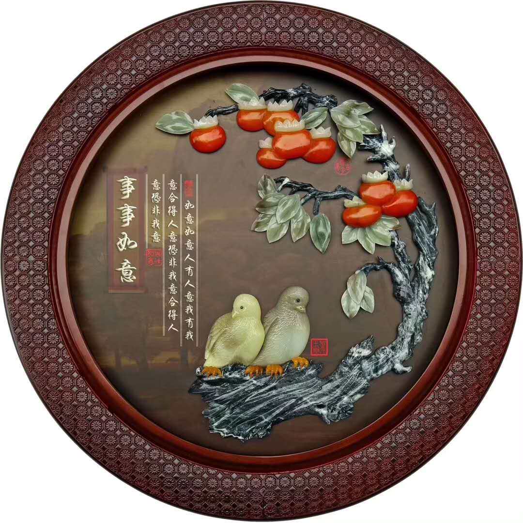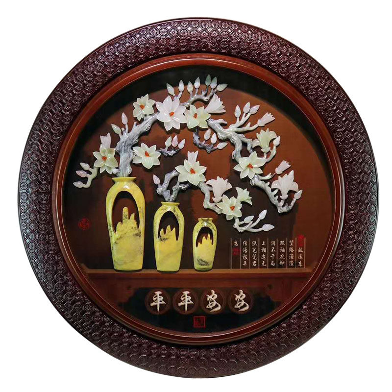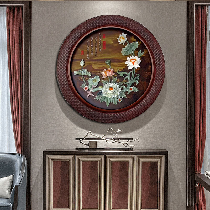 New Chinese Jade Sculpture Painting Xuanguan Living Room Sofa Background Wall Decoration Painting Round Solid Relief Dining Hall Jade Hanging Painting