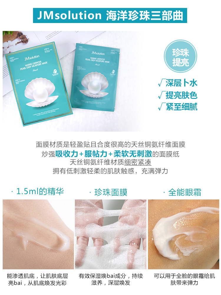 South Korea JMsolution Water Light Honey JM Mask Female Moisturizing Moisturizing First Aid Marine Pearl Tender White ten slices