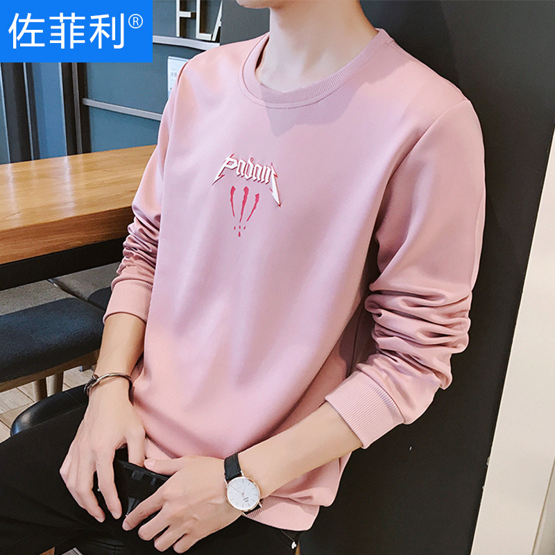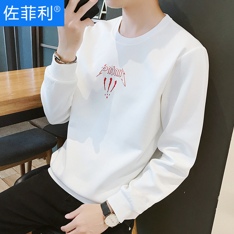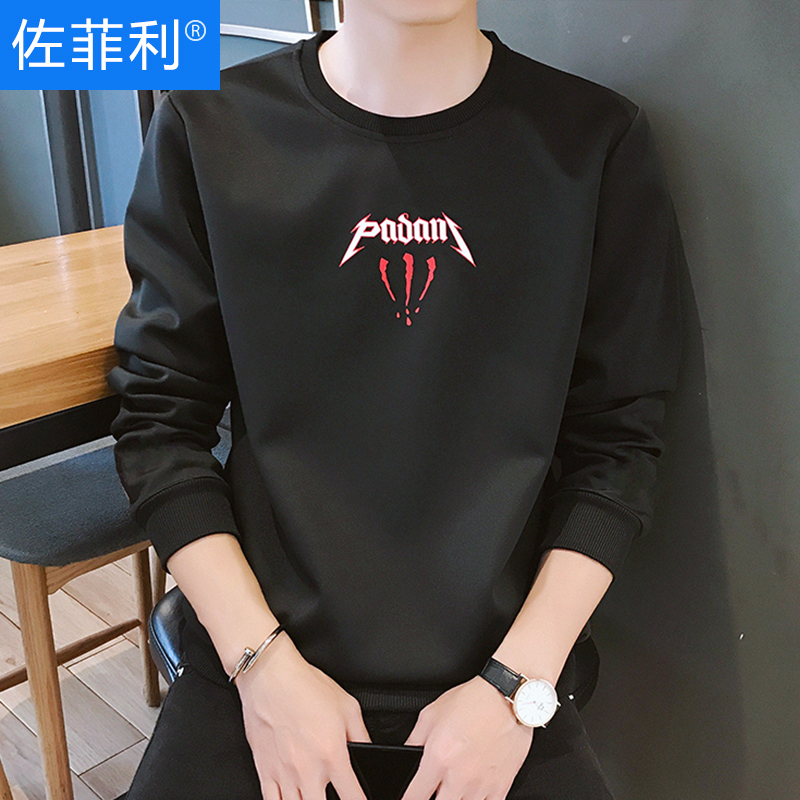 Men's thick T-shirt fall new Korean version trendy lovers fit round collar T-shirt male tide card ins loose 100 lap up clothes