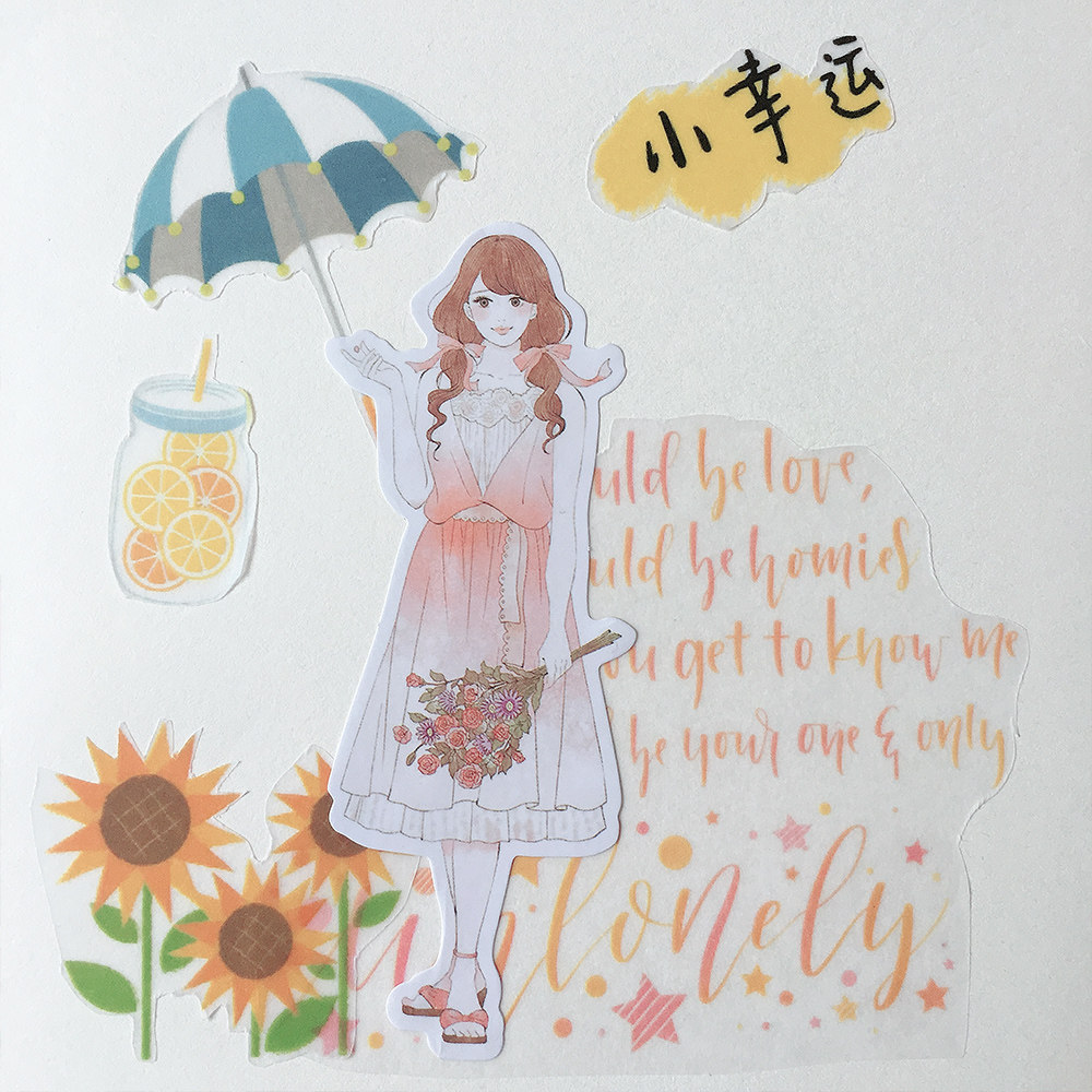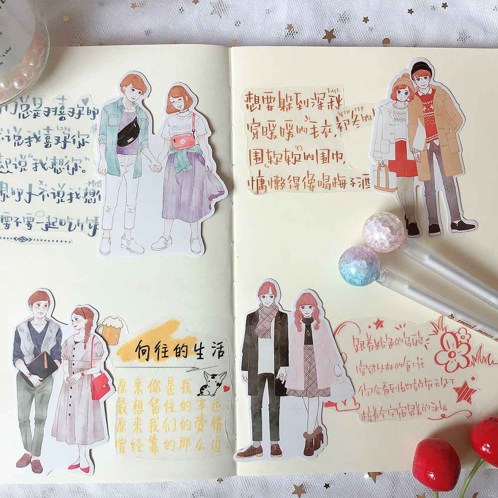Hand account stickers Original fashion character couple love girl heart little sweet girl Mori girl diy sticker
