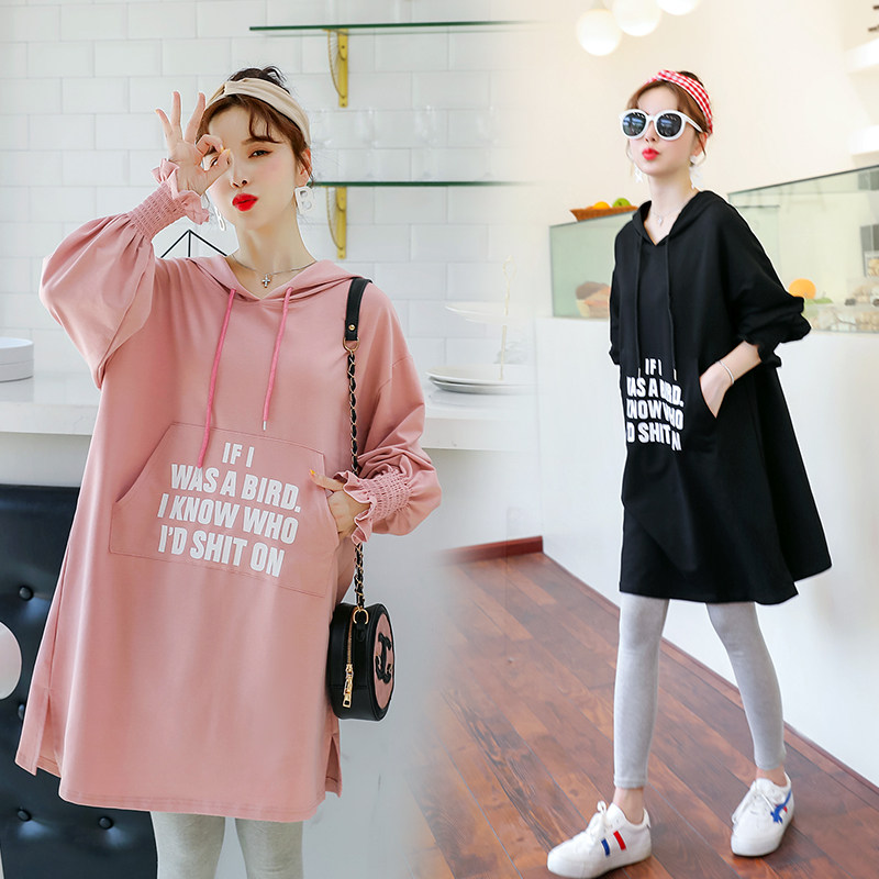 Maternity Fall/Winter Outerwear Women's 2021 Loose Sweatshirt Fashion T-Shirt Mid-Length Plus Velvet Set Tops Spring and Autumn Season