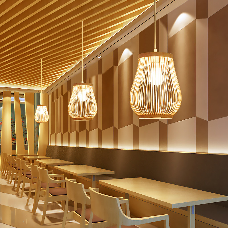Day Style Chandeliers Chinese Zen-style Bamboo Woven Tea Room Dining Room Dining Room Light Balcony Tatami Lamp Bamboo Art Fire Pot Shop Table Chandeliers
