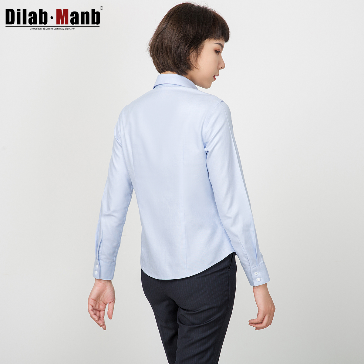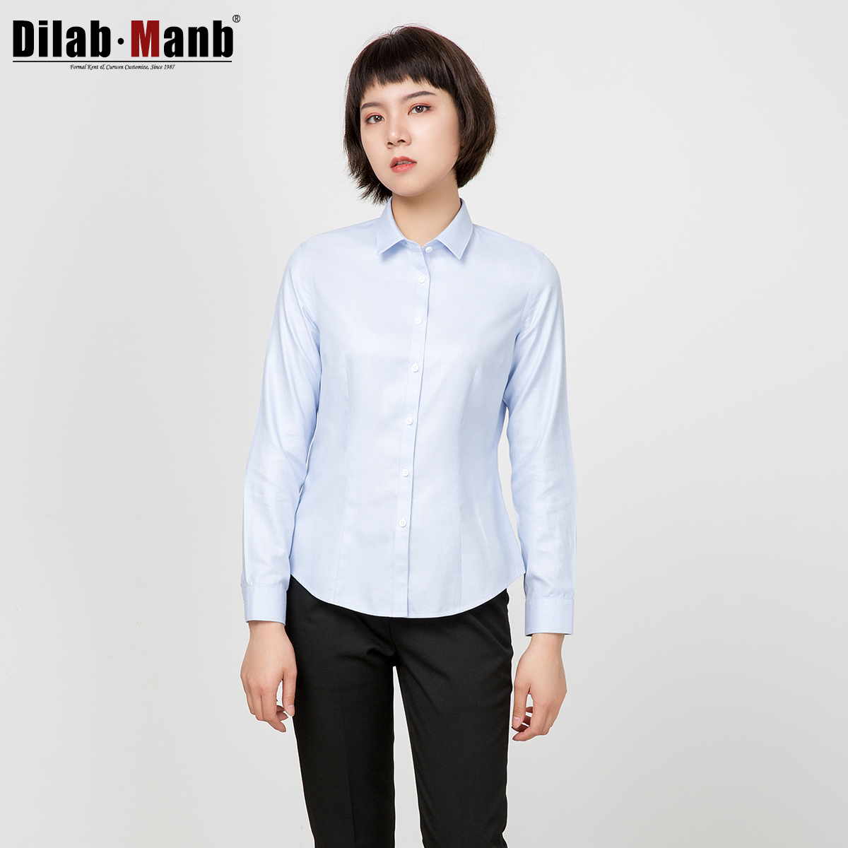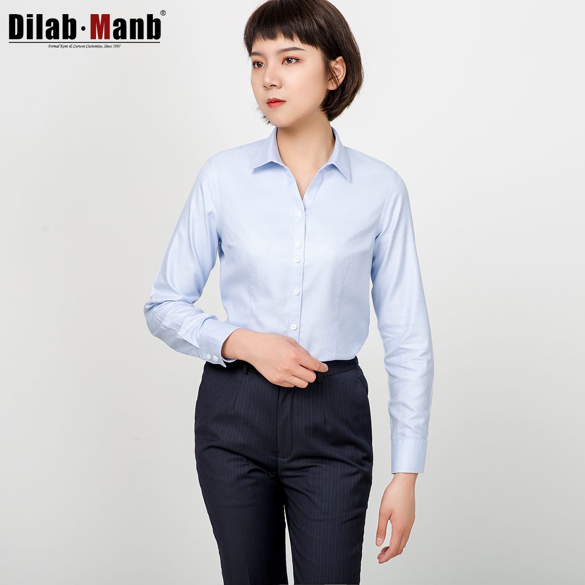 Dimeng Shirt Women's Long-sleeved Blue Cotton Non-ironing Shirt Women's Professional Wear Temperament Slim Workwear Interview Formal Dress